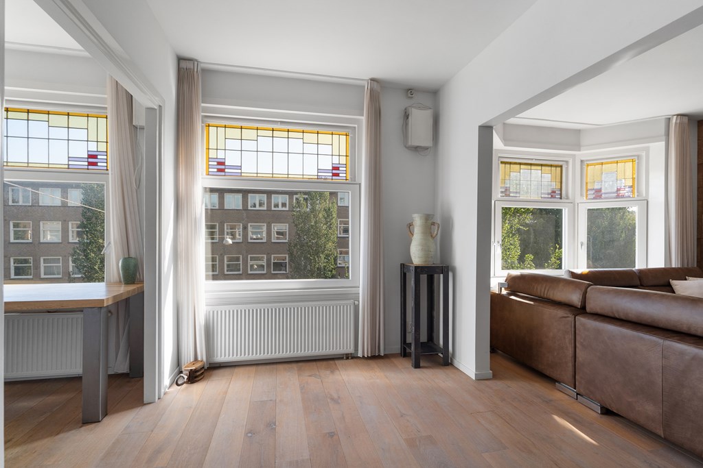 Located on lively Rijnstraat, in the sought-after Amsterdam South, you will find this exceptional double upper-level apartment of approximately 177 m². The home features a private entrance, four bedrooms, three bathrooms, a sunny balcony, and a generous private rooftop terrace of about 39 m². Comfort, light, and authentic details come together here in one of the city’s most desirable neighborhoods.