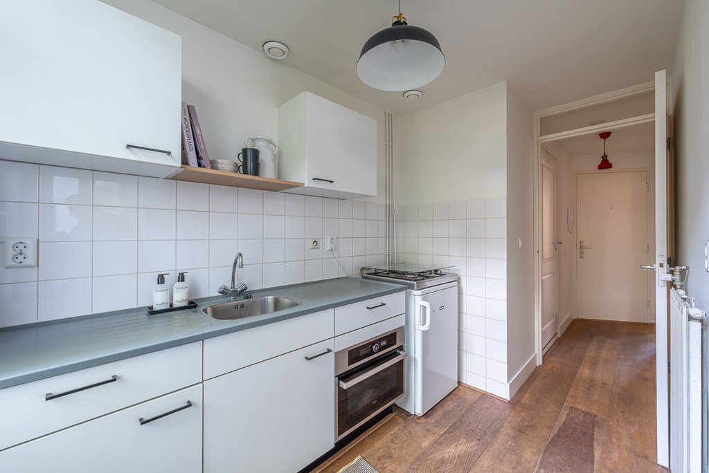 Apartment of 43 m² with a spacious living room at the front featuring a French balcony, a separate kitchen and a bedroom at the rear, both with access to the sunny south-facing balcony, plus a fully insulated additional room of approximately 13 m² on the upper floor, ideal as a guest room or home office.