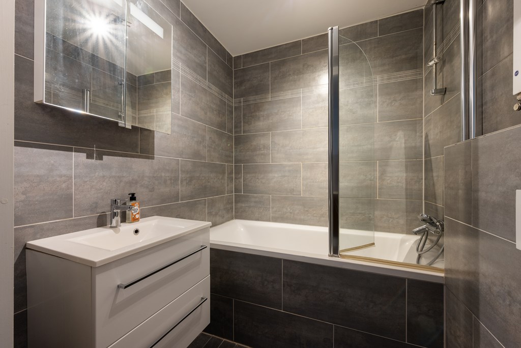 Centrally located in the apartment is the bathroom, fitted with a bathtub/shower combination, toilet and modern washbasin unit.
