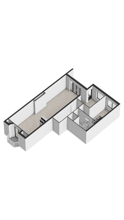 The light winding staircase in the living room leads to the top floor, which has been transformed into a spacious sleeping level of approximately 23 square metres. This floor feels open and serene, with a layout that emphasises comfort. Thanks to the open concept, it functions as a full master floor.