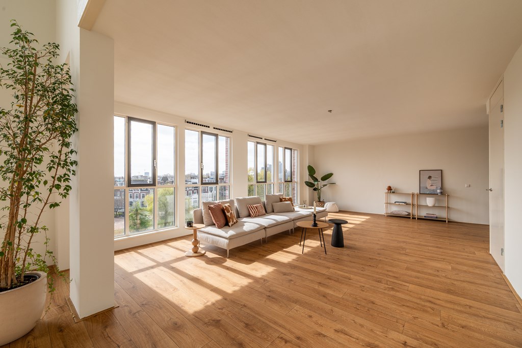 The penthouse is situated on the Oranje Vrijstaatkade in the highly sought-after Amsterdam East, right on the edge of the characteristic Watergraafsmeer district. Via the Evert van der Wallbrug, you can easily walk or cycle into the green Watergraafsmeer area, known for its peaceful, village-like character within the city. For relaxation and recreation, Oosterpark, Flevopark, and Park Frankendael are all within close proximity. Sportpark Voorland is just around the corner, as well as several gyms, including TrainMore located on the same street.